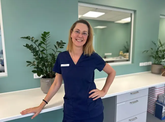 Eva-Maria blev uddannet som veterinærsygeplejerske 2024 og har været her på klinikken siden juni 2025.